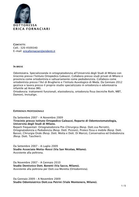 Lettera presentazione Aso 2 - Odontoiatri Estensi Dopo essermi dedicata per diversi anni, con passione, al lavoro di addetta alla segreteria ho deciso di assecondare la mia spiccata indole empatica, interessandomi al ruolo di assistente alla poltrona, conseguendo la qualifica di "Assistente di Studio Odontoiatrico" a maggio del 2015. Da tale data ho potuto maturare esperienza in ambito ...